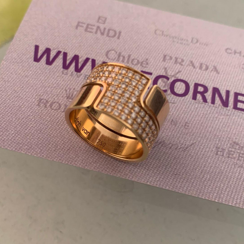 Din Vanh bague or jaune pavé diamants, taille 52.