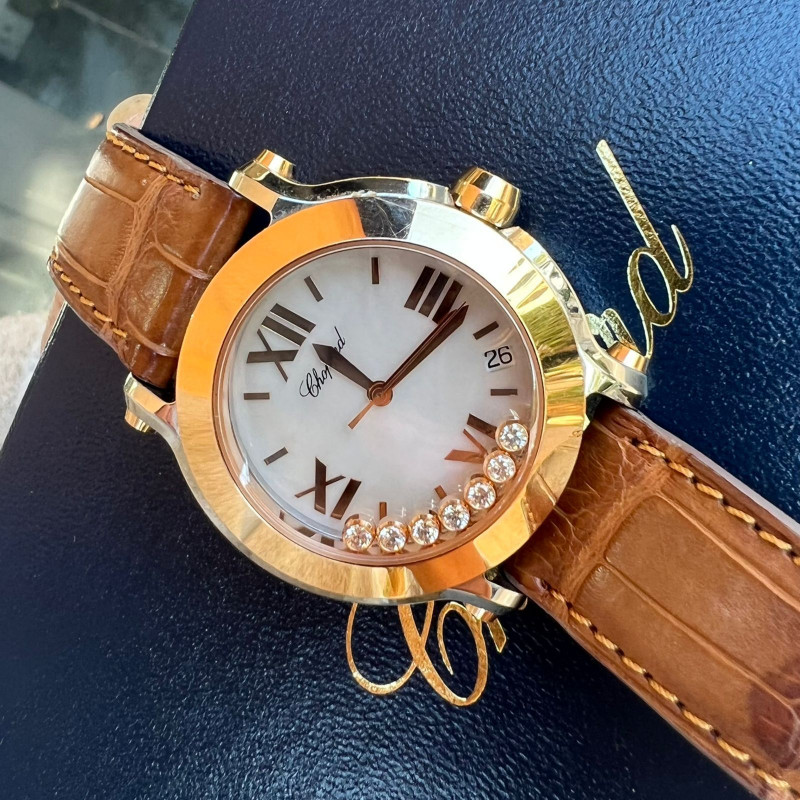 Chopard 36mm Or Rose Acier 7 diamants, avec boîte et papiers.
