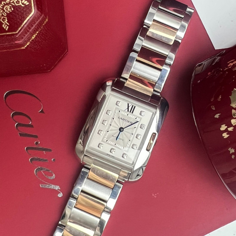 Cartier Tank Anglaise Or Rose Acier Diamants.
