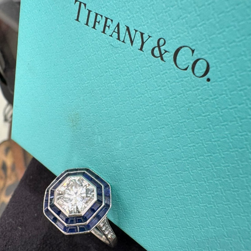 Tiffany & Co bague 2.13 carats diamants et saphir taille 51.5.