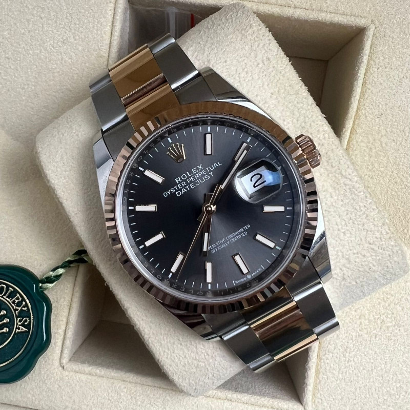 Rolex 36 mm or rose acier boîte et papiers.
